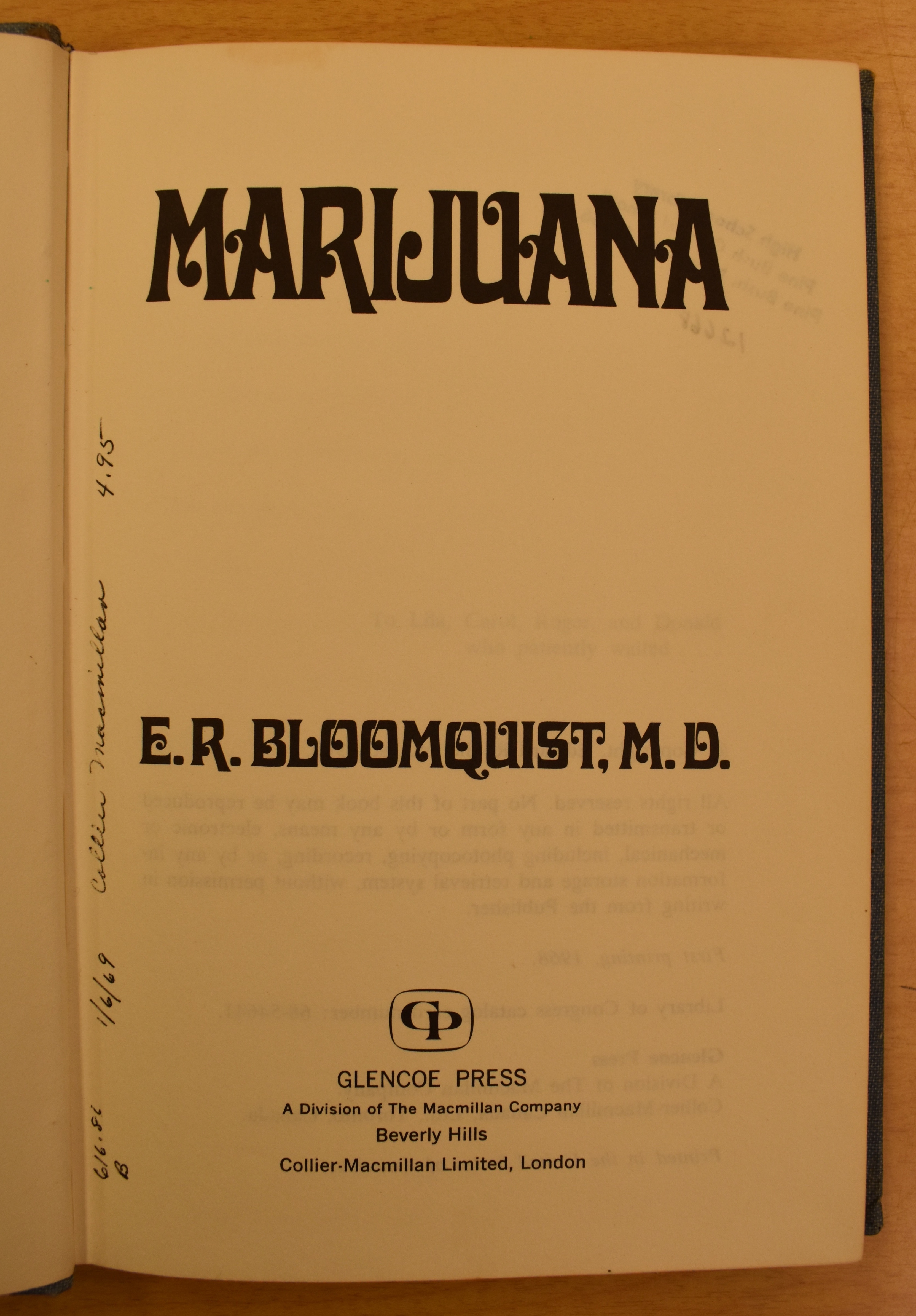 Dr. E.R. Bloomquist, Marijuana