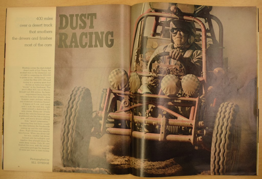 The 14 May 1971 issue of Life featured Bill Eppridge’s photos of the 1971 Mint 400 alongside a short (and unattributed) description of the race and the conditions of the course.