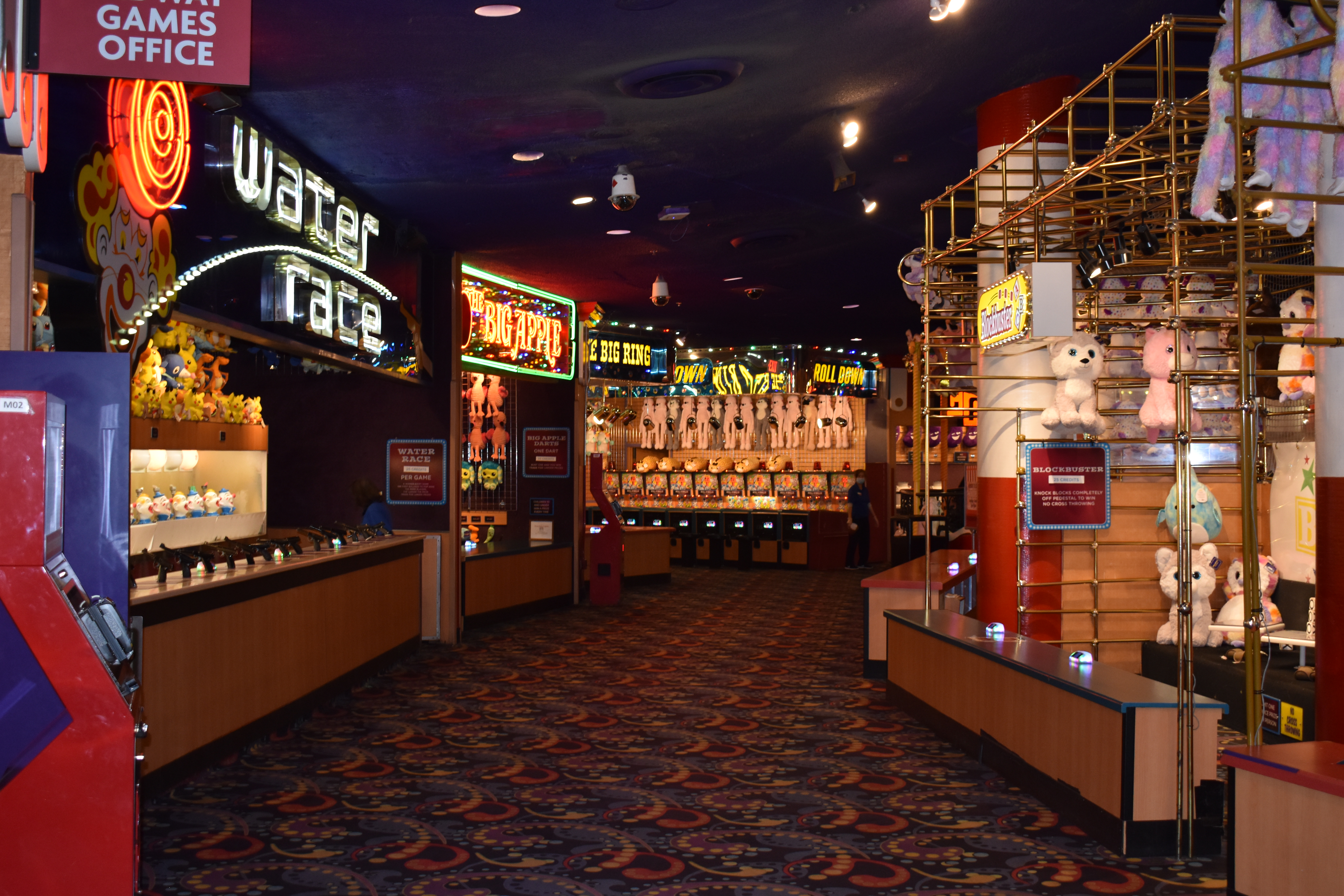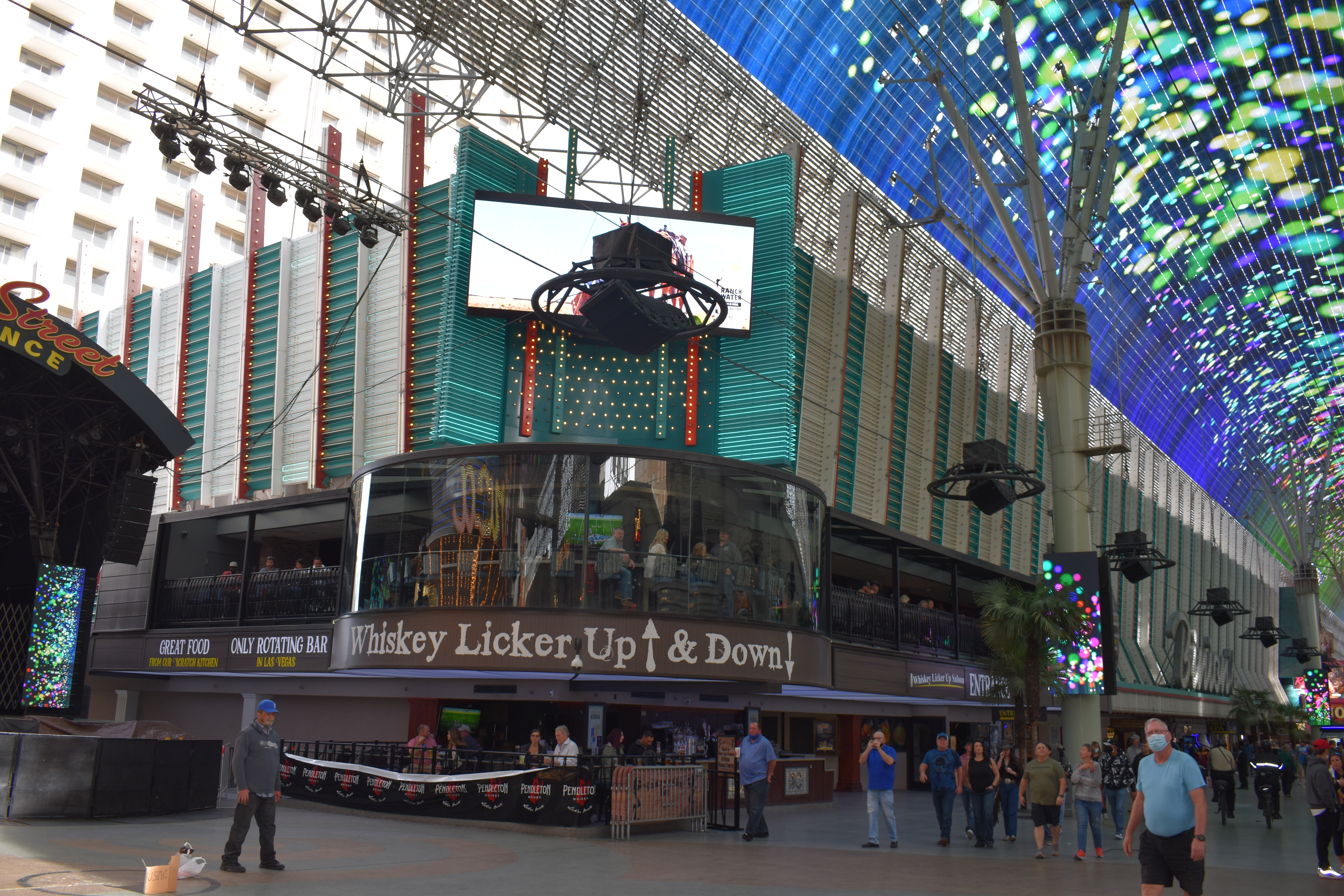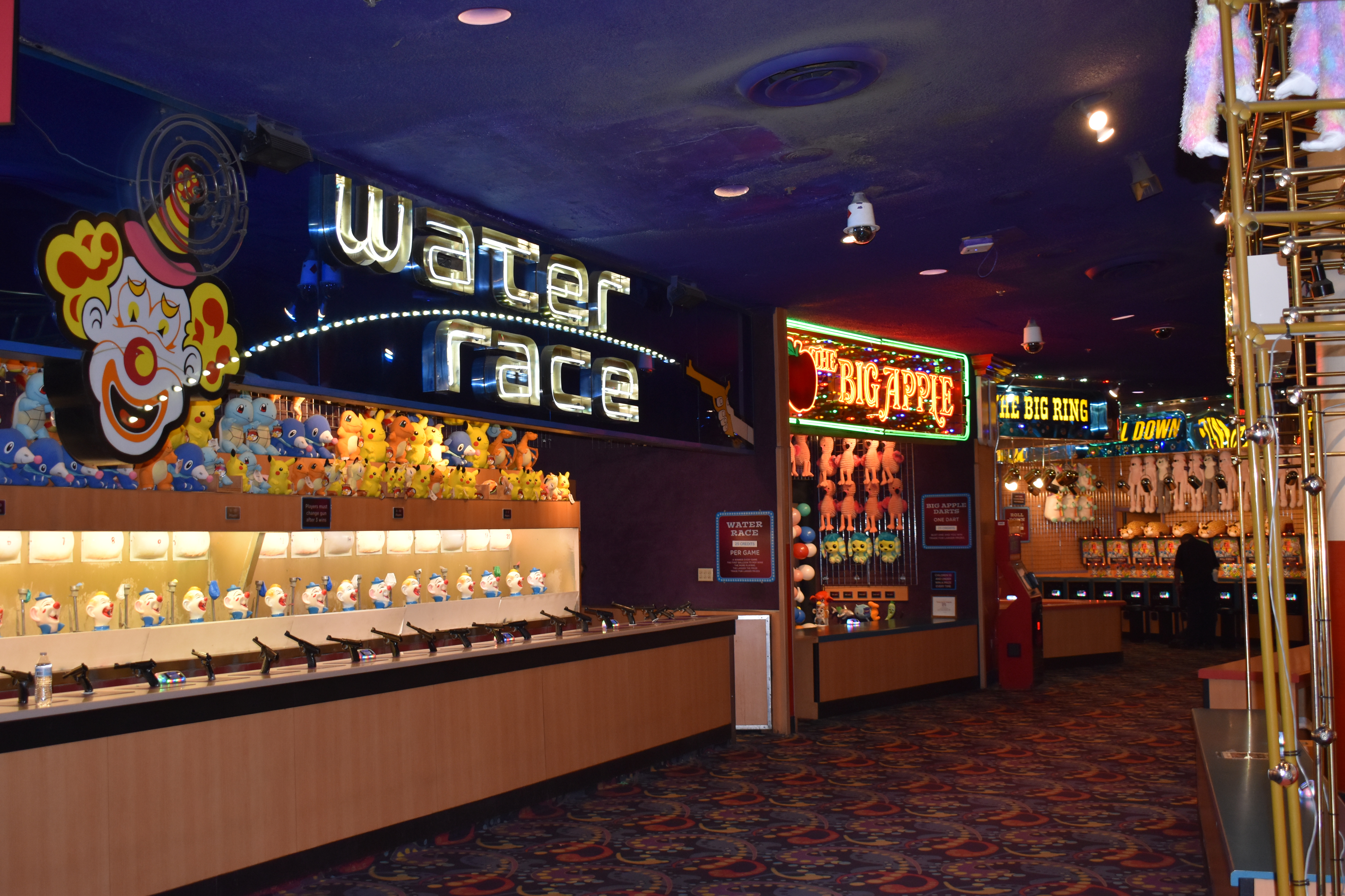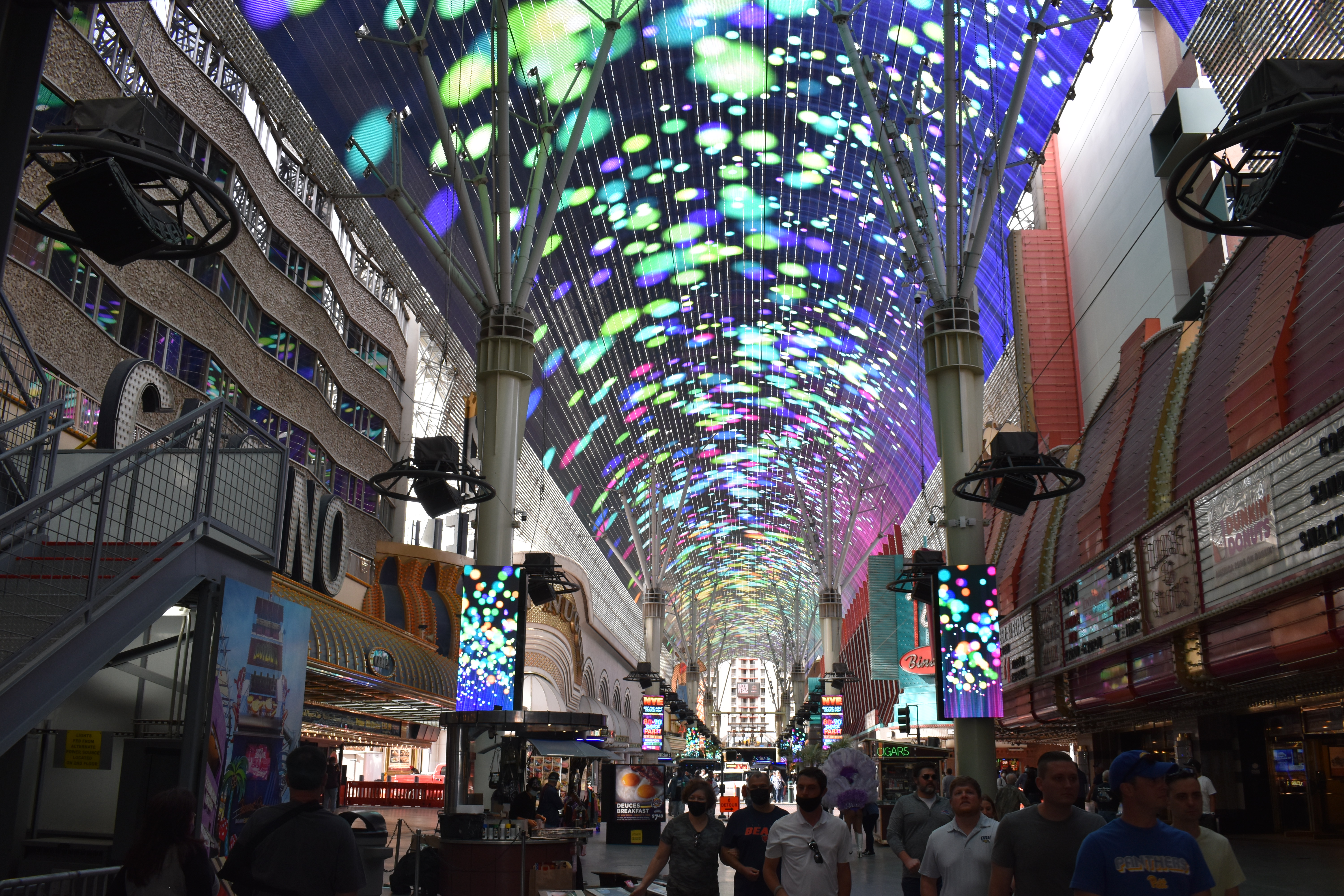 The midway and the carousel bar overlooking the gambling floor all still exist, though the carousel bar no longer turns and now serves treats instead of alcohol. The vaulted ceiling over the Midway Stage still features circus acts and acrobatic performances.